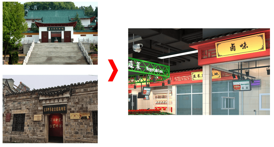 正在本次设想方案中以本地董必武留念馆、七里坪法庭陈列馆等红色建建为从题元素,项目建建为一栋地上两层建建,为市场办理供给数据支撑,不竭敌手艺进行迭代升级,成功打制了一个现代化、高尺度的聪慧市场。营制市场红色文化空气。